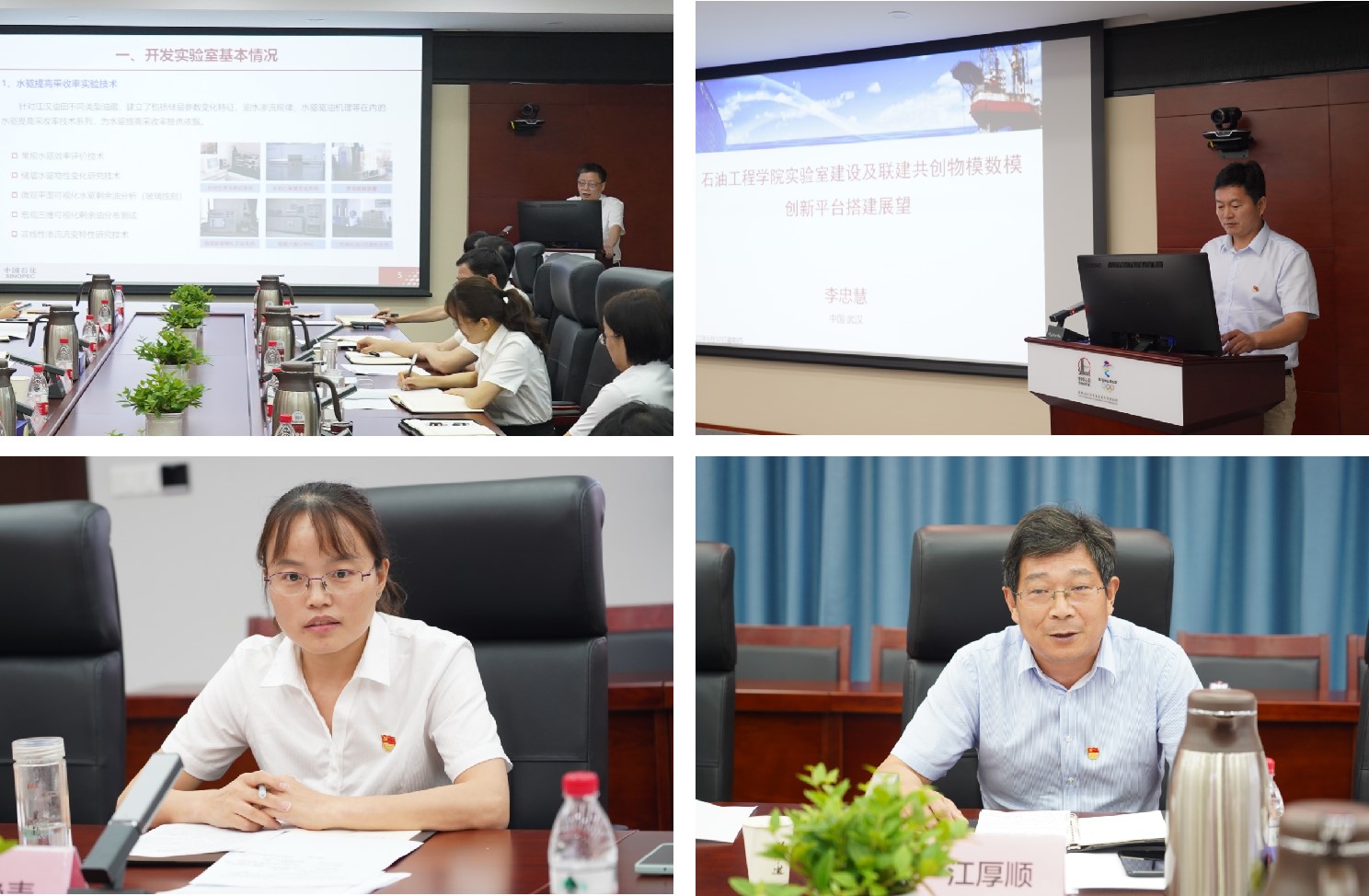 在产学研协同创新平台共建方案研讨会上,油田专家张书平、副院长李忠慧就双方实验室建设现状及展望、项目成果经验等做了交流分享。江厚顺院长、荣焕青副院长对联建共创工作交流进行了总结和部署,他们提出,要借助本次联建共创活动,以党建引领科研,以科研促进党建,在人才培养、平台共建、科技攻关等方面发挥合力,推进党建与业务深度融合。