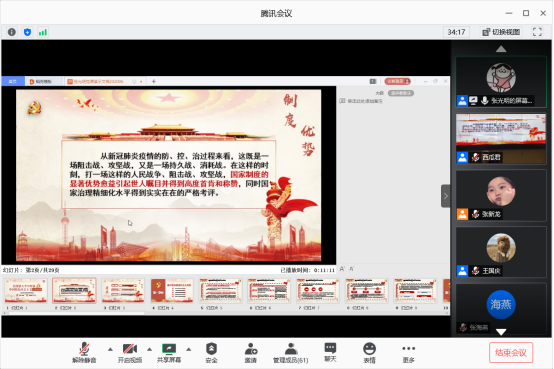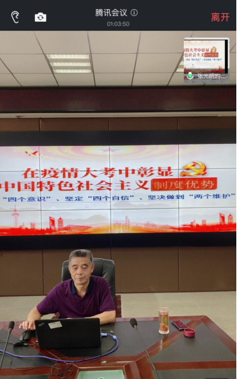 (通讯员 王国庆)2020年6月30日下午,yl6809永利官网集团在腾讯会议开展了“在疫情大考中彰显中国特色社会主义制度优势”专题形势政策课。本次课程由石油工程学院党委书记张光明主讲,全院在读本科生、研究生党员参与学习。