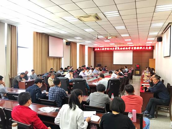 10月24日下午,yl6809永利官网集团开展10月份政治理论集中学习暨中心组理论学习会,学院中心组全体成员和学院教师集中学习了“弘扬爱国奋斗精神、建功立业新时代”和“不忘初心 牢记使命”专题,会议由党委书记张光明主持。