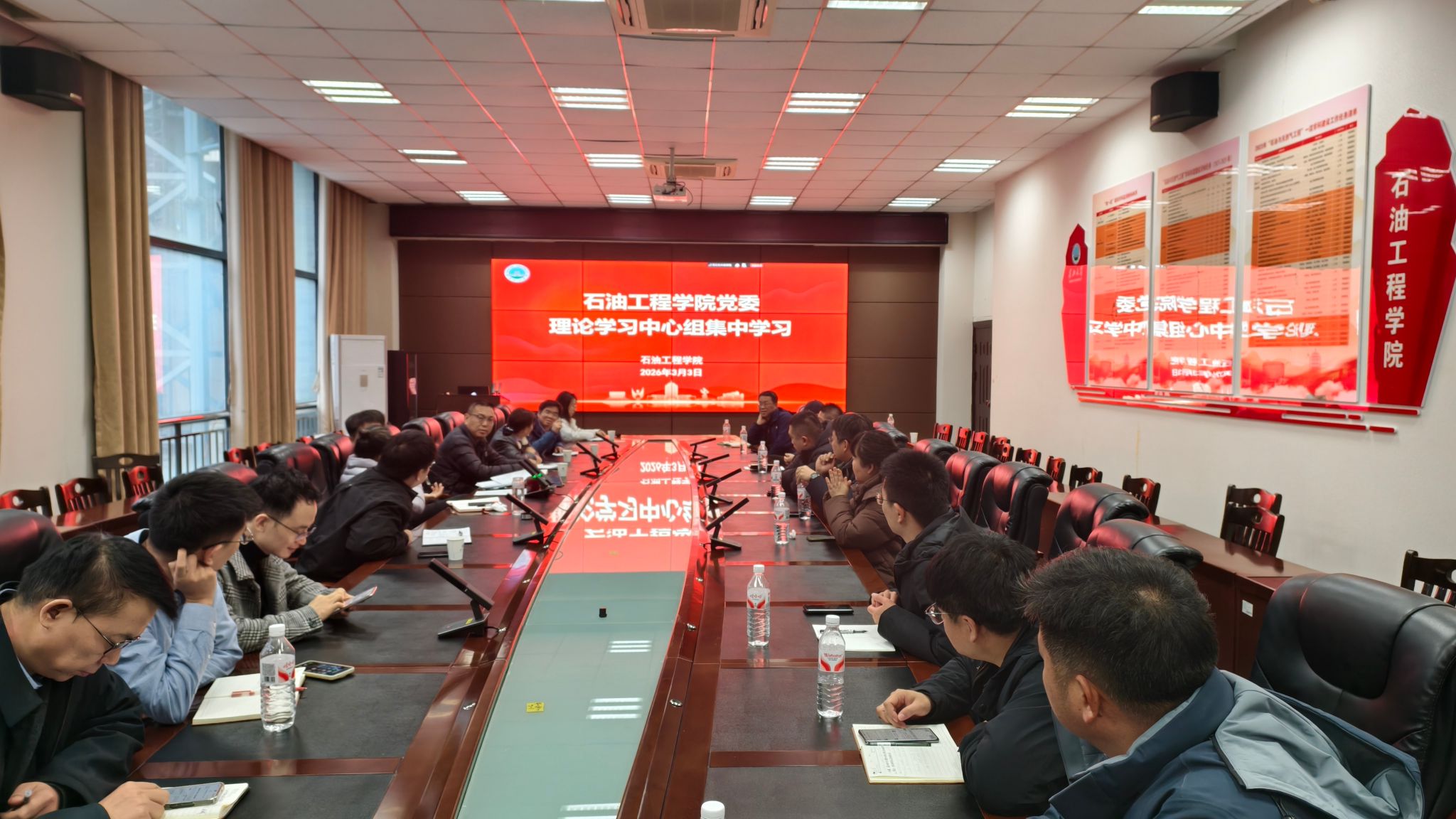 3月3日下午,yl6809永利官网集团党委理论学习中心组在石油科技大楼B113会议室开展集中学习扩大会,中心组成员、教工党支部书记、系(中心)主任、研究所所长和教学团队负责人参加。会议由党委书记张伟主持。