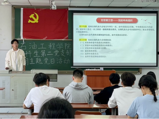 活动分为六个环节:重温入党誓词,交纳本月党费,集体诵读《中国共产党章程》(第三章 党的中央组织),讲授微党课,开展理论学习和开展主题研讨。