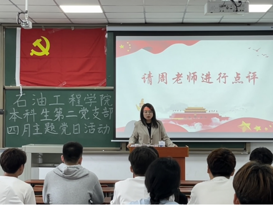最后,由周晓峰老师作总结与点评。她对全体党员同志提出三点要求:一是要加强学习教育,二是要严格自我要求,三是要做好内部监督,从严从实抓好党支部建设工作。