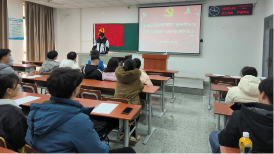 会议第一项议程,王国庆同志带领全体党员庄严宣誓;其次,带领全体党员学习规定内容;主题研讨环节,於亮等同志结合自身经历表示,通过参加学术讲座和研讨会等,深入了解石油领域的前沿技术和最新研究成果,成为具有国际视野和创新精神的人才,以更加优异的成绩向中华人民共和国成立75周年献礼。