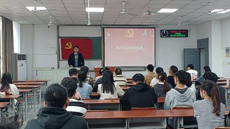 首先,汪帮哲同志带领全体党员重温入党誓词;其次,带领全体党员集体诵读学习党章(第八章);随后汪帮哲同志带领大家开展理论学习,学习习近平总书记重要讲话及指示精神等;主题研讨环节,徐敏和钟璇等同志结合自身经历表示,作为学生党员要摒弃浮躁和虚假的态度,以务实的精神去面对问题,以实际的行动去解决问题,努力学习党的有关理论知识,按照标准严格要求自己;努力提高自己的素质,作为新时代的青年,提高自己的素质是非常重要的,从现实出发,不断提高自己的思想健康和道德品质,努力成为表率。