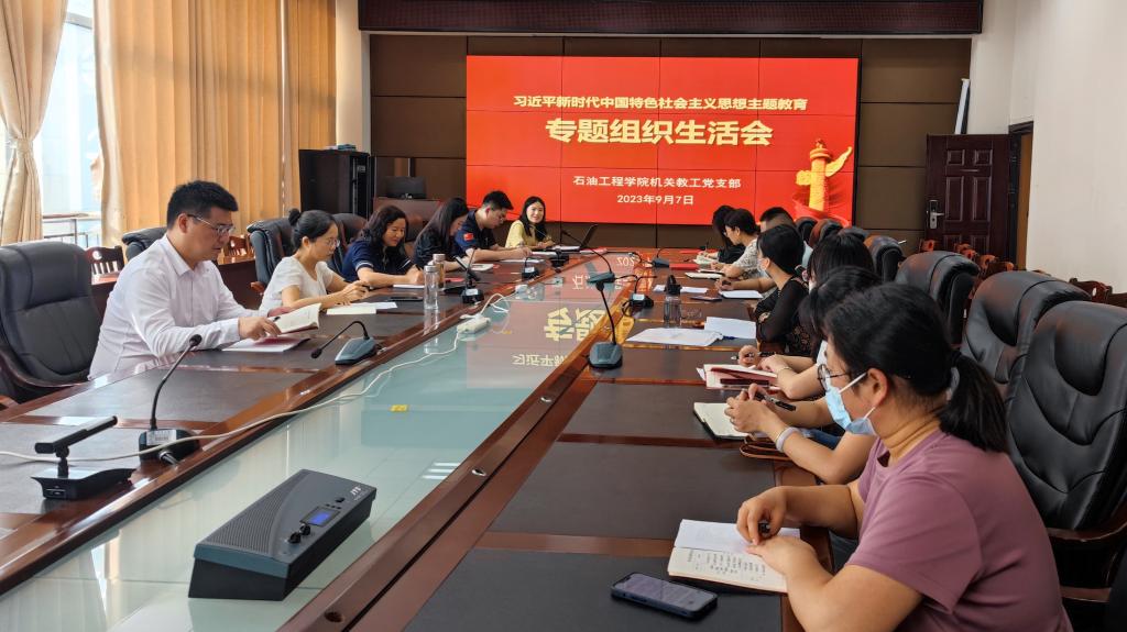 根据学校党委《关于召开学习贯彻习近平新时代中国特色社会主义思想主题教育专题组织生活会的通知》的要求,9月7日上午,yl6809永利官网集团机关教工党支部在石油科技大楼B113会议室召开了2023年专题组织生活会,会议由支部书记杨小玉同志主持。