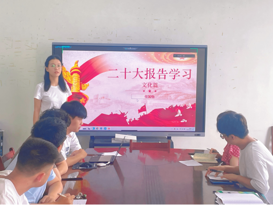会议伊始,薛宇琪和骆帅同志带领支部同学领读和学习党章,然后由魏莉桐同志和张文浩同志发表了主题为“作为一名学生党员,对学习‘千万工程’和‘浦江经验’案例体会”的感想。接着,任加怡同志和葛建伟同志分别做了题目为“做好中华文化自信排头兵”和“砥砺传承先烈精神生力军“的微党课分享。通过本次党日活动,引领了学生党员学习先进思想,筑牢了红色思想理念,树立了前进奋斗的风向标。
