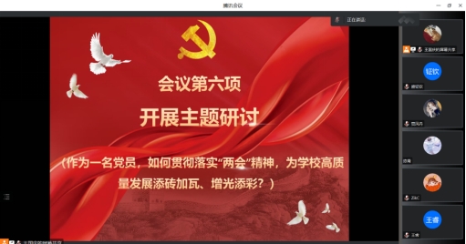 最后,支部书记史永波作总结,一是要将全国两会精神贯彻到实际工作中去,将经验和做法落实到工作中,使之与时俱进、有效可行;二是要认真分析学校发展决策,提出更多可行性的建议,发挥支部党员的主力军作用,积极参与学校各项建设工作中去;三是他本人将带头履行支部书记职责,做好支部建设和党员发展工作,提高党组织的凝聚力和影响力,为学校的高质量发展贡献更大力量。