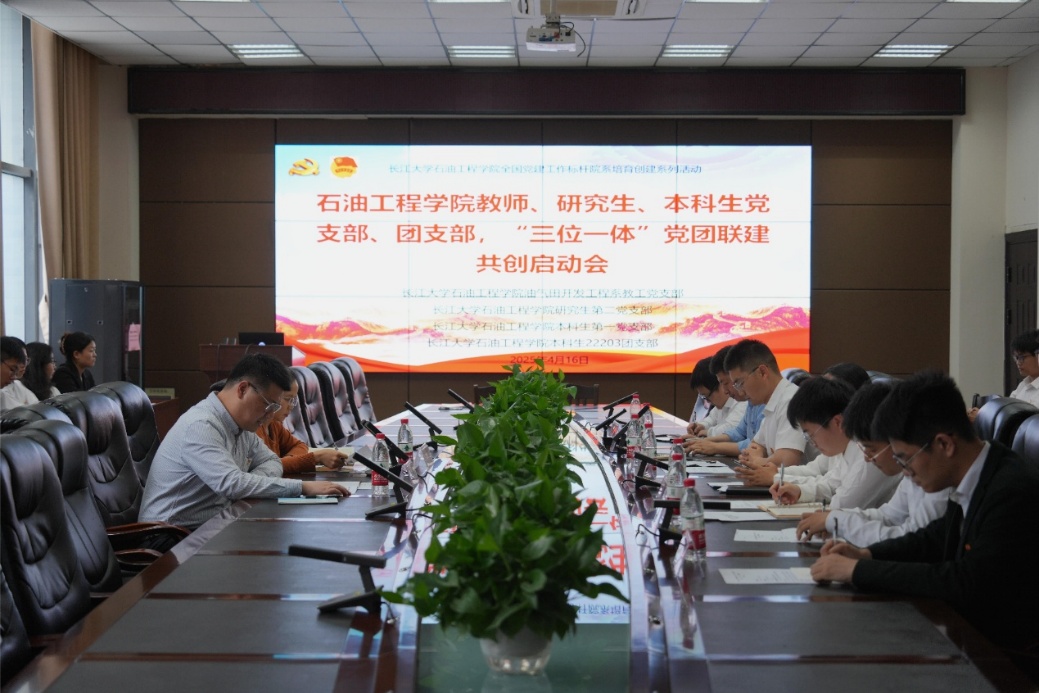 (通讯员 许文俊)4月16日下午,yl6809永利官网集团在石油科技大楼B113会议室举行"三位一体"党团联建共创启动会暨"党团融合聚力 科教协同育人"主题党日活动。学院师生代表、本科生党支部、团支部等50余人参加活动,共同开启党建引领团建的创新育人实践。活动由油气田开发工程系教工党支部书记许文俊同志主持。