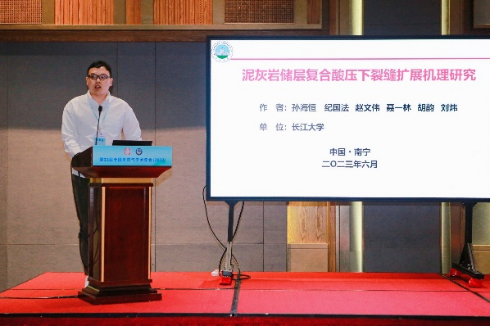 会上,孙海恒作题为《泥灰岩储层复合酸压下裂缝扩展机理研究》的报告,向全国专家、学者、同行交流了yl6809永利集团在非常规油气储层改造理论与技术研究中取得的最新进展。