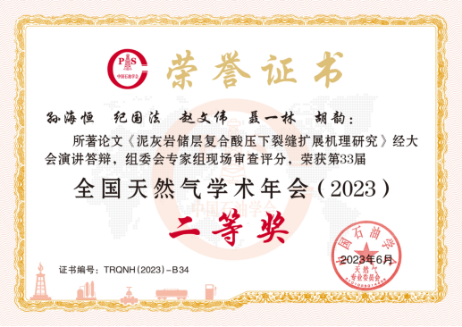 (通讯员 孙海恒)近日,从中国石油学会天然气专业委员会获悉,我院2020级硕士研究生孙海恒(导师:纪国法)在第33届全国天然气学术年会上荣获优秀论文二等奖。