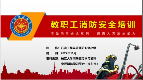 为加强消防安全工作,预防火灾和减少火灾危害,保护学校和师生生命财产安全,学院于11月29日开展教职工消防安全培训会。为达到培训效果,学院精心制作教职工消防安全培训资料,内容主要包括:校园火灾主要形成的原因;如何预防火灾、扑救初起火灾、组织人员疏散逃生等方面,特别是对办公室、实验室等教职工经常出入场所如何预防火灾,进行详细的介绍。
