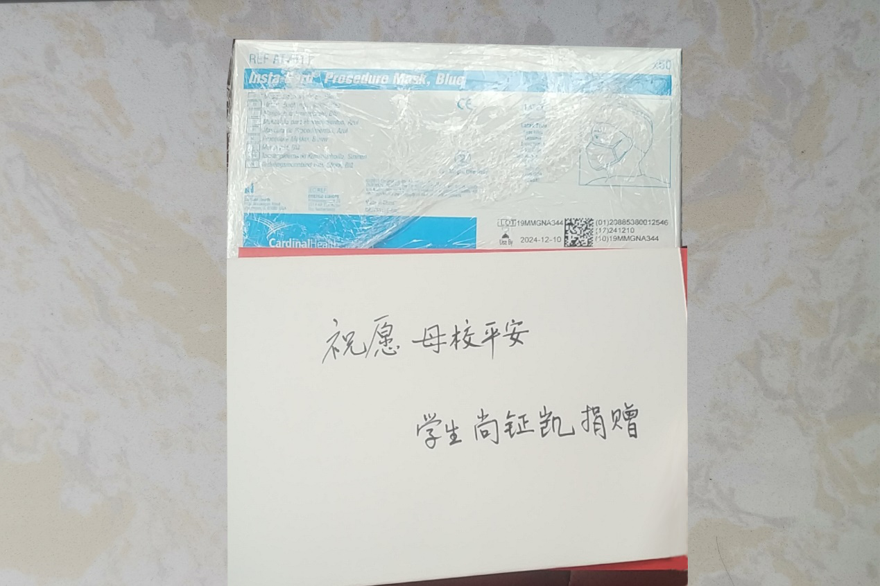 2020年1月中下旬新冠疫情突然爆发,口罩俨然成为了紧缺物资,全国各地的口罩都已经几乎售罄,武汉的口罩更是十分的短缺。就在这样的节骨眼上,在中石油塔里木油田公司油田监督中心任职的我校校友尚钲凯,依然时刻关心着位于武汉的yl6809永利官网集团的情况,在第一时间想尽办法,克服困难从美国购买了100余个口罩,发往武汉。因为快递原因,包裹3月20日才抵达武汉。