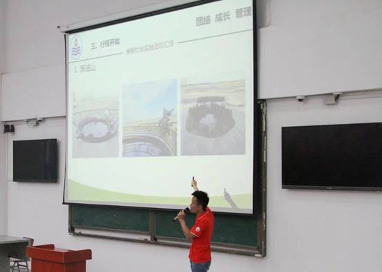 中秋节的假期给新生的军训增添了亮丽的一笔,上午的拉练也圆满结束。下午,新生同学们便来到了教学楼B102,倾听学长学姐们的分享。就坐完毕后,新生辅导员刘少文老师主持并宣布大会开始。刘老师讲到:“此次克拉玛依之行,我们见识了许多,获益匪浅,希望借助这次大会的机会让大家对石油行业有更深的一些了解。”社会实践小分队队长陈金建紧接刘老师的话音,接过话筒展开了他的演讲。陈金建从社会实践的前期招人讲起,再经过一系列的准备--收集信息、准备资料、规划路线、前期写稿……之后,实践活动正式展开。他讲到:此次克拉玛依之行并不容易,几十个小时的火车、一顿顿的泡面、辗转的夜晚,等等。过程虽然比较辛苦,但正是这样的辛苦才让我们的实践活动变得更加有意义。随后,他介绍了新疆之旅到达的地点和参观的流程以及对新疆的看法,让新生同学们对新疆及其石油产业有了初步的了解,台下同学也是被精彩的讲述深深吸引。
