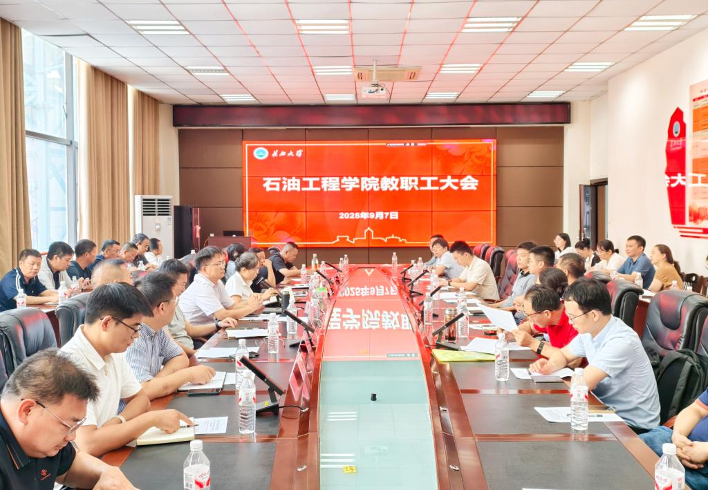 9月7日下午,yl6809永利官网集团在石油科技大楼B113会议室召开全体教职工大会,规划部署学院机构与机制改革重点任务,并收听收看学校庆祝第41个教师节暨新学期工作部署会。会议由学院党委书记张伟主持,全体教职工参会。