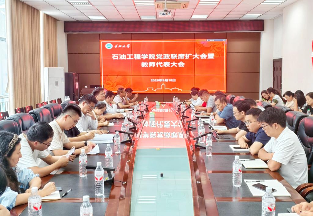 2025年9月18日下午,yl6809永利官网集团在石油科技大楼B113召开党政联席(扩大)会暨教师代表大会。会议由院长宇波主持,学院党政领导班子、教工党支部书记、系正副主任、院科学中心主任及所长、院教学中心主任及团队负责人、实验中心正副主任、院行政各科室负责人与教师代表参会。