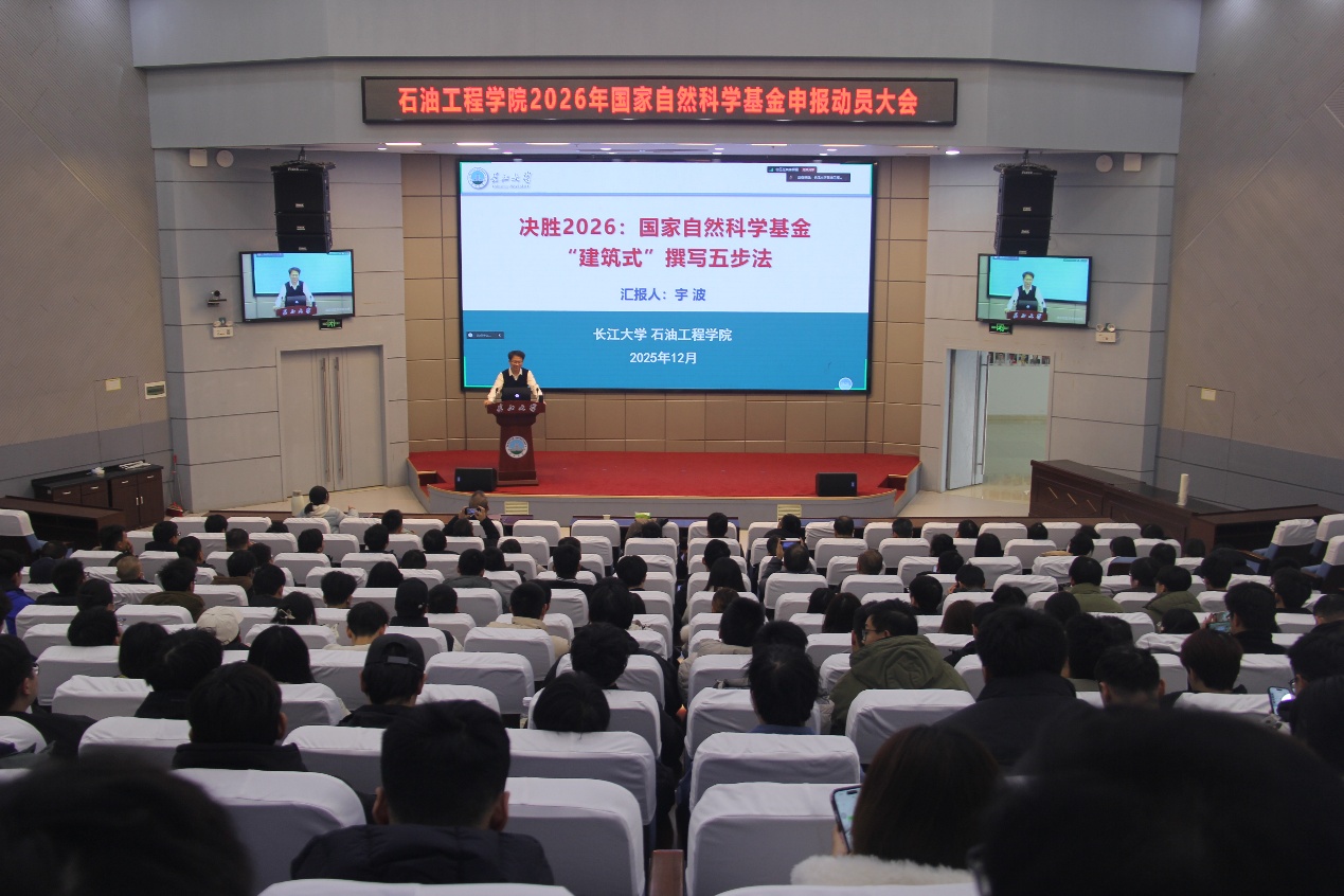 (通讯员 杜婷/文 周世超/摄)为扎实推进2026年国家自然科学基金申报工作,提升申报质量与立项成功率,12月18日下午,yl6809永利官网集团在学术报告厅召开2026年国家自然科学基金申报动员大会。学院院长宇波、副院长郑双进、各研究所所长、青年教师代表、科研骨干及博士、硕士研究生参加会议。会议由副院长郑双进主持。
