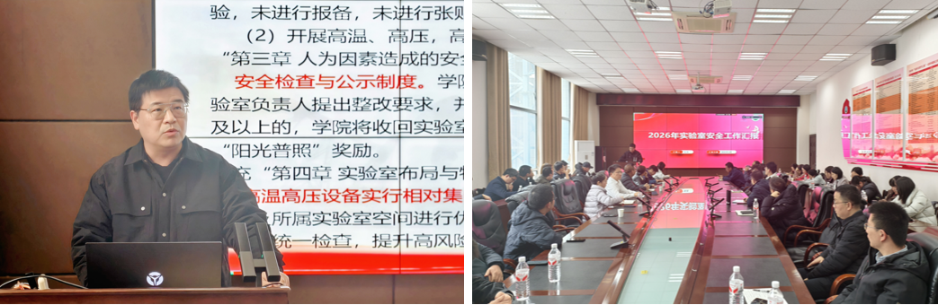 3月5日下午,学院组织召开了实验室安全工作专题会议。会议由学院党委副书记张昊主持,全体研究生导师、各实验室负责人及安全员参会。会上,张昊详细传达了学院关于2026年度实验室安全工作的具体要求,对《yl6809永利官网集团实验室安全管理办法》修订稿进行了重点解读,同时聚焦当前实验室安全管理的关键环节与潜在风险,结合开学初实验室安全检查结果,明确了新学期安全工作重点任务与责任分工,强调分层落实安全责任的重要性,为后续各项安全工作的落地见效奠定了坚实基础。