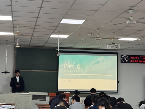 汇报环节中,选手们充分展现了个人规划与职业愿景。成长赛道的粟思睿同学结合大学学习生活、科创实践与志愿服务经历,分享了个人成长路径,表达了“科创报国”的坚定志向。就业赛道的陈鑫同学则围绕就业方向与未来发展,勾勒出清晰的职业蓝图,赢得了评委老师的一致好评。