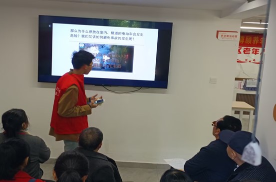 在几十位居民的目光下,主讲人杨宇帆以生活中的能源开篇,介绍了家庭能源使用场景,并深入拓展能源安全对国家的重要性,不仅关乎人民的基本需求,还是经济发展的基石,更是国家安全的核心。宣讲中提到,我国生活中常见安全隐患有如电动车自燃,天然气泄露等情况,诸多案例皆是令人扼腕叹息,每一次问题爆发都在对一个个家庭造成极大的伤害。可见我国居民能源安全意识仍需提高,规范安全用电必须铭记。
