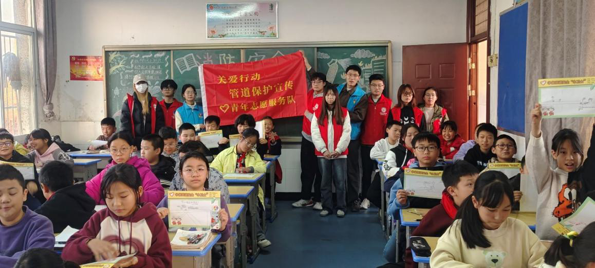 本次活动由志愿者尹果、胡伦、汤家阳和舒淑鑫主讲,他们采用生动有趣的方式,将复杂的油气管道安全知识转化为孩子们易于理解和接受的形式,为六年级的同学们介绍了日常潜在危险、管道安全常识、自护自救技巧等知识。