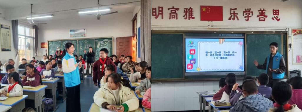 活动现场氛围热烈,学生们踊跃参与互动,展现了浓厚的学习兴趣。同时,其他志愿者也积极协助维护秩序,确保宣讲顺利进行。