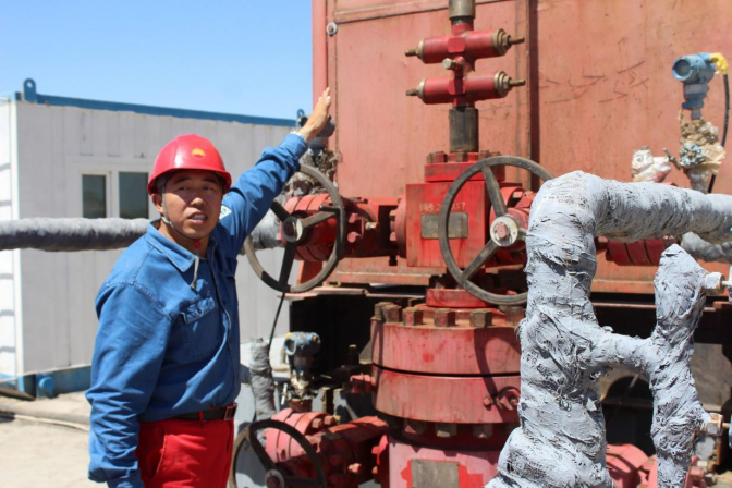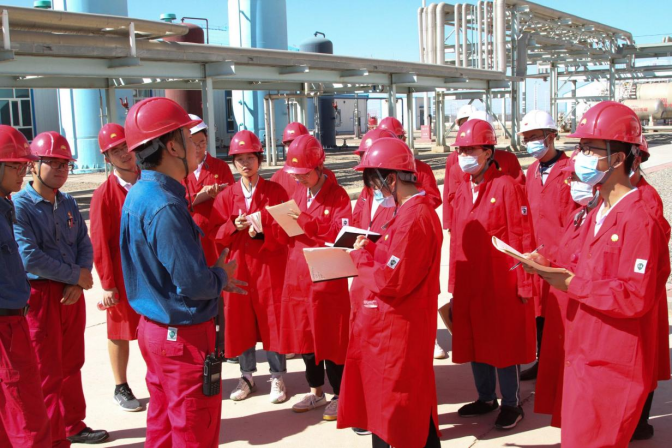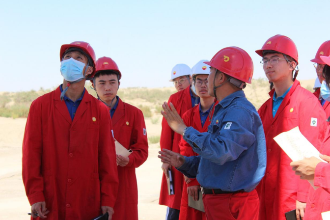 在茫茫沙路中随车前行,我们头戴安全帽,身穿红色工作服。短短几十分钟,我早已汗流浃背,难以想象石油工人是如何在这样的环境下工作。在这茫茫戈壁滩中工作实属不易,但是他们还有关乎国家命脉的任务在身,他们没有抱怨,他们也没有因为艰苦而选择离开,他们选择了坚守。塔里木石油人与当地最常见的红柳和胡杨最为相似,他们像红柳一样努力吸取水分,扎根在沙漠上;像胡杨一样即使外衣被烈日晒伤、晒裂,它们依然努力的生长着。他们有着沙漠胡杨般“生而一千年不死,死而一千年不倒,倒而一千年不朽”的传奇气概,又有着戈壁红柳般“根出艰苦不放弃、身处恶劣不言苦、自力更生不抱怨”的朴实精神。结果可想而知,有这样一群有情怀、有理想的人,使塔里木油田在2020获得3000万吨年产量的优秀成绩。